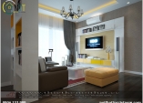 Căn hộ chung cư này sử dụng 3 màu sắc chủ đạo đó là vàng - nâu- trắng, sự kết hợp màu sắc này giúp không gian rộng hơn và thoáng hơn.