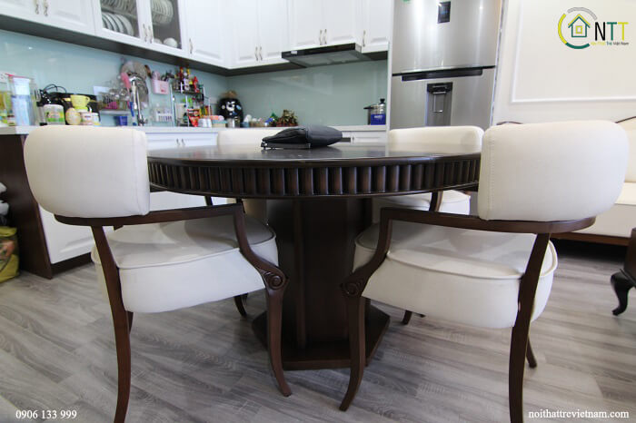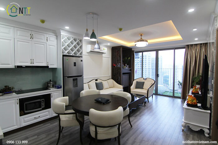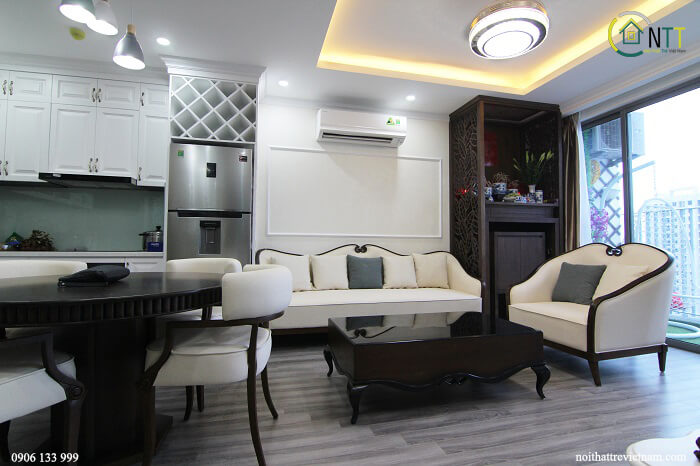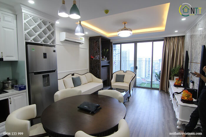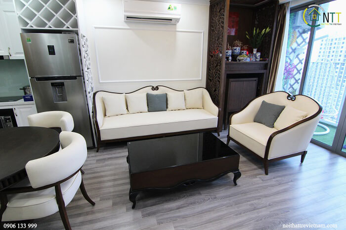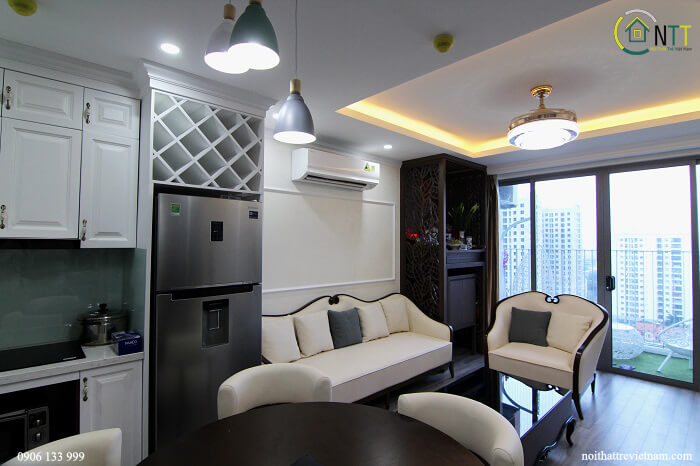 Căn hộ chung cư Thống Nhất Complex 90m2 3 phòng ngủ nhà chị Mai sử dụng đồ nội thất gỗ sồi Mỹ sơn Inchem màu trắng, riêng phòng ngủ 2 con sử dụng gỗ mdf lõi xanh siêu chống ẩm An Cường.
