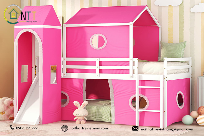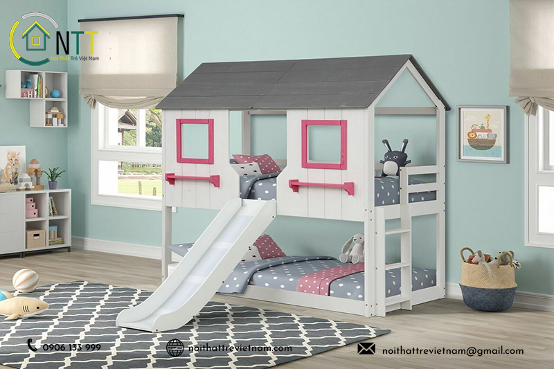 Ưu điểm thiết kế phòng cho 2 bé gái với giường tầng cầu trượt