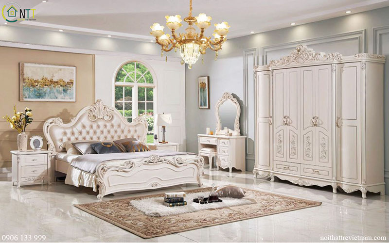 Màu trắng mang phong cách tân cổ điển pha chút hiện đại không chỉ mang đến sự sang trọng mà còn rất phù hợp với những cô nàng ưa thích sự dịu dàng, cổ điển. Thiết kế ấn tượng và vô cùng tinh tế. Các chi tiết được chạm khắc tỉ mỉ với những hoa văn khó làm tôn lên vẻ đẹp của không gian và mang đến sự sang trọng, quý phái.