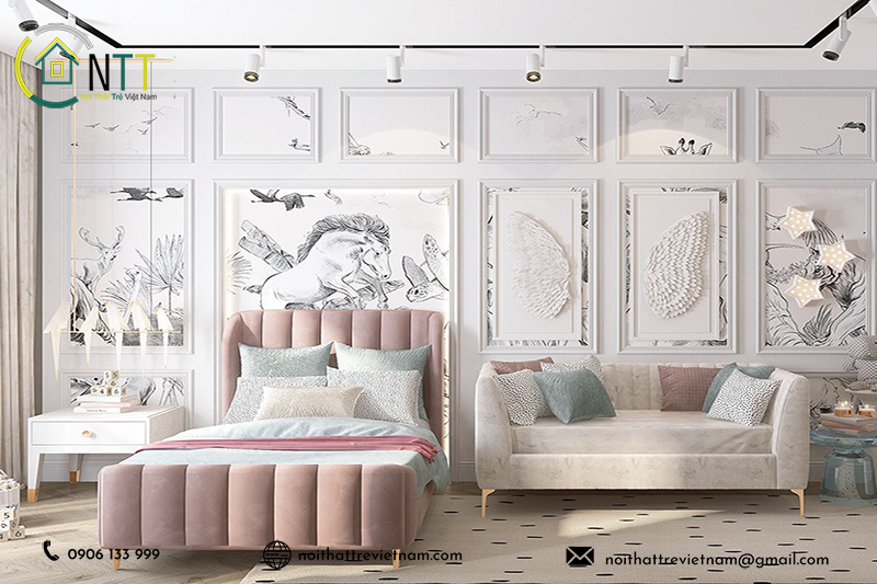- Bé sẽ có thể thỏa sức sáng tạo, hóa thân thành những nàng công chúa xinh đẹp, những cô bé phiêu lưu dũng cảm, hay những chú lùn đáng yêu trong chính căn phòng của mình.