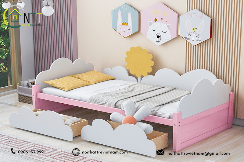 - Chức năng: Kết hợp thêm ngăn kéo để cất giữ đồ đạc hoặc tích hợp thêm khu vực vui chơi cho bé.