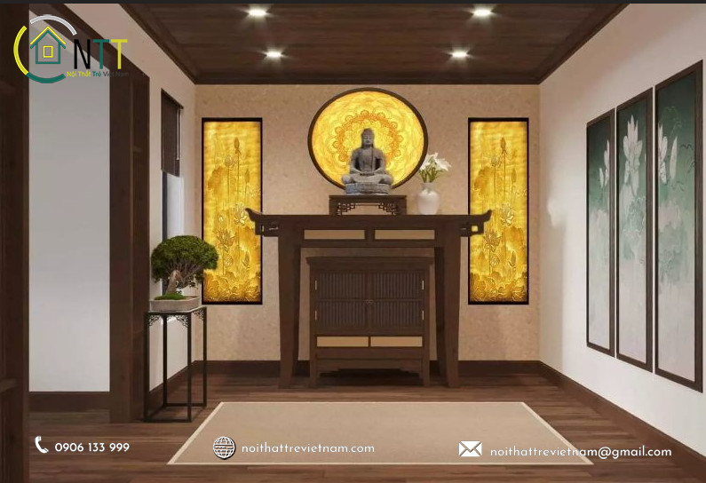 Dưới đây là một số mẫu thiết kế phòng thờ đẹp và trang nghiêm mà bạn có thể tham khảo: