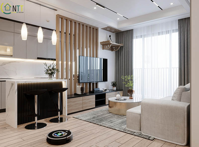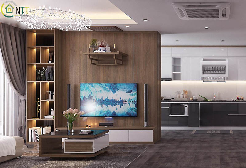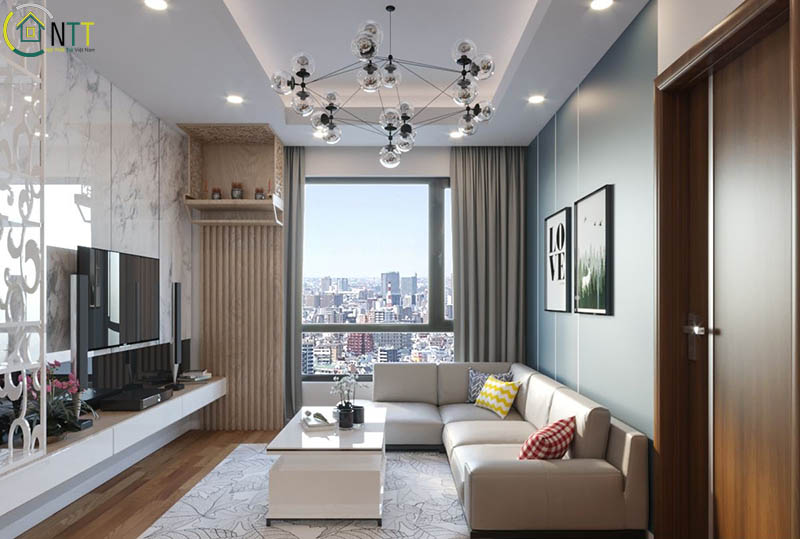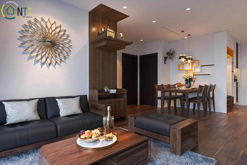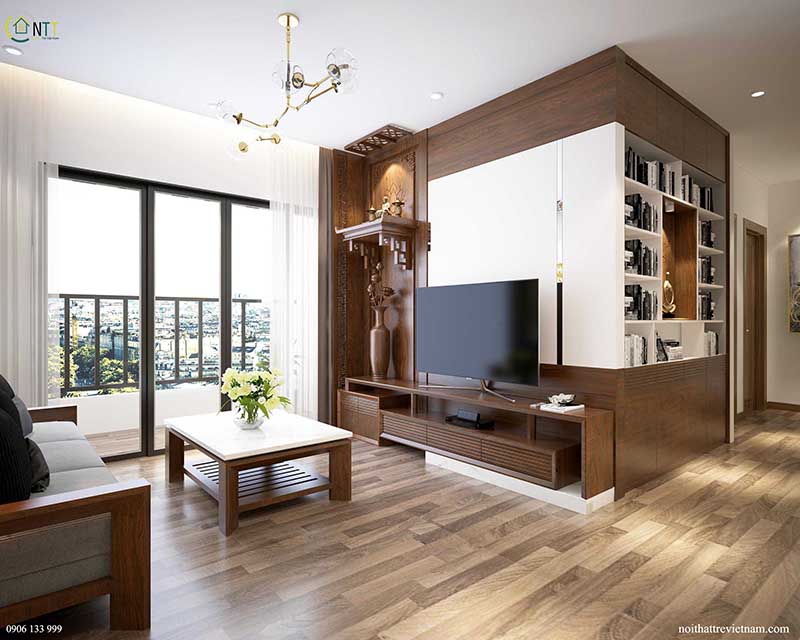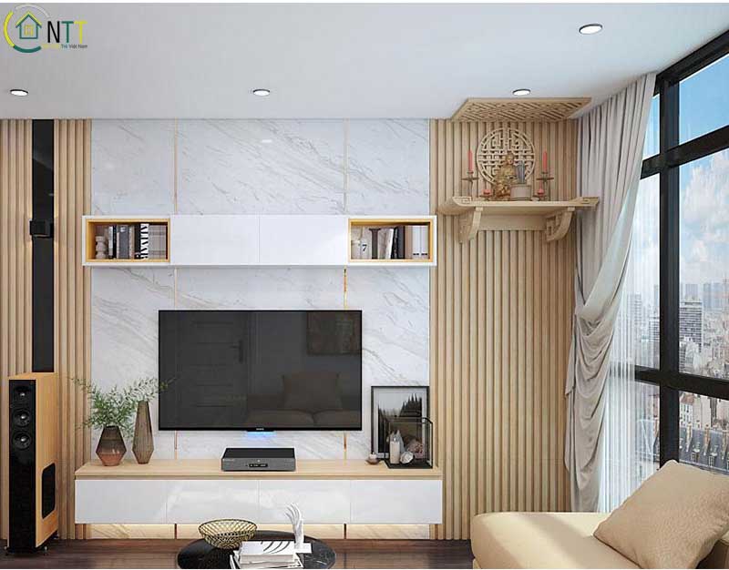 Mẫu căn hộ phòng khách với bàn thơ treo tường đẹp