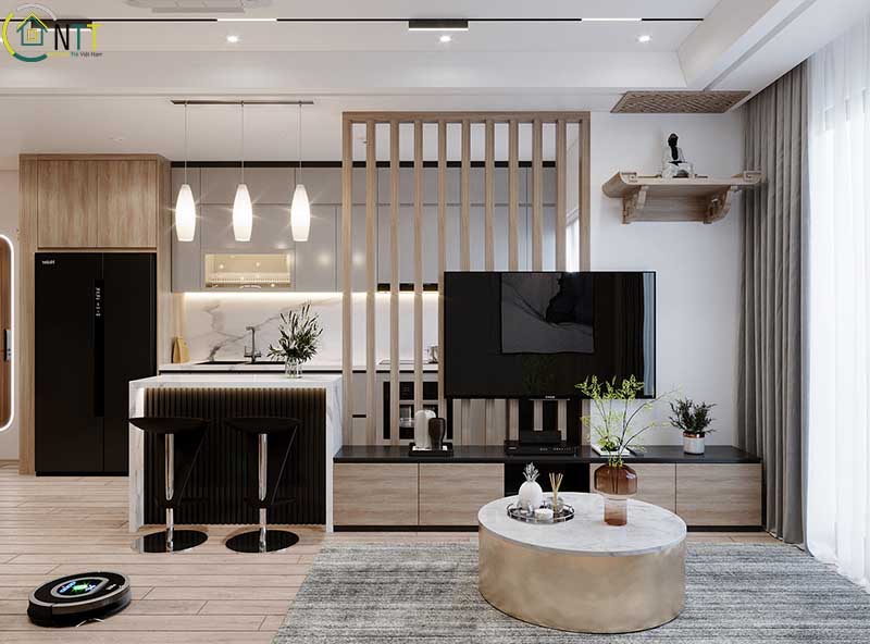 Việc sử dụng vách ngăn sẽ tạo nên một ban thờ Thái Cực thu nhỏ thể hiện lòng thành kính với tổ tiên