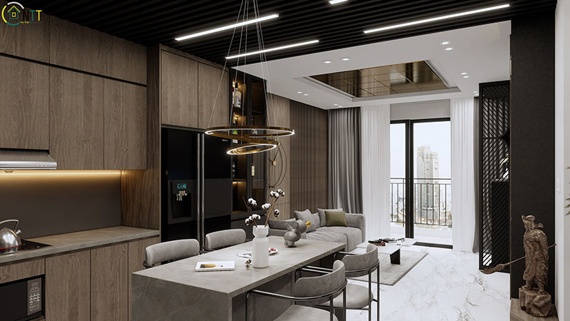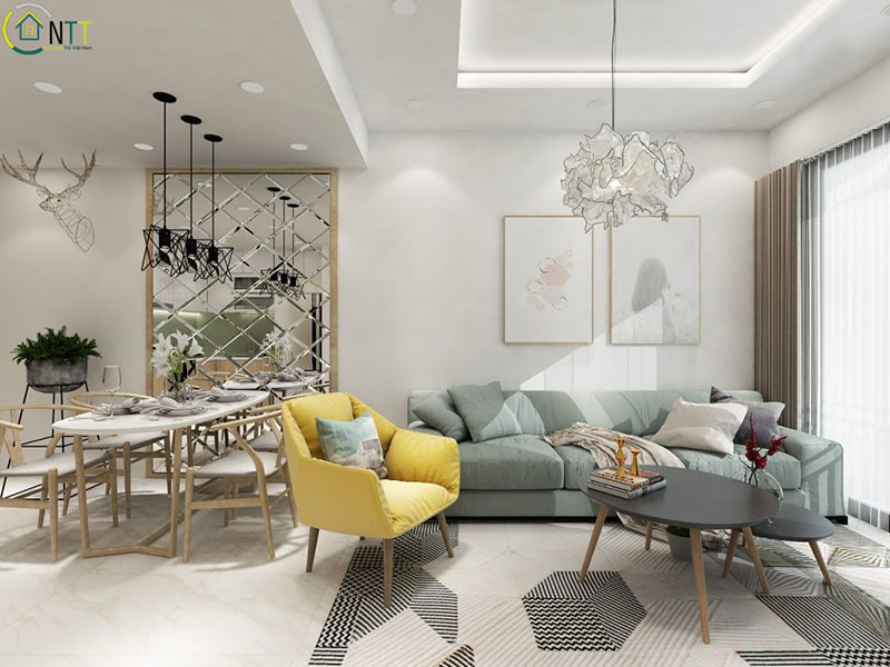 Đồng thời điểm đặc trưng phổ biến của căn hộ chung cư hiện nay là từ cửa ta có thể quan sát thẳng vào phòng khách và khu vực bếp. Chính vì thế mà việc thiết kế nội thất càng khó hơn.