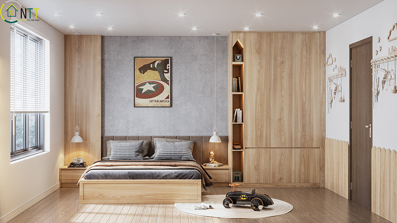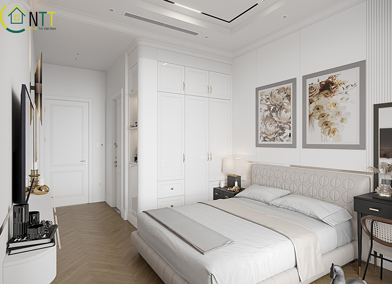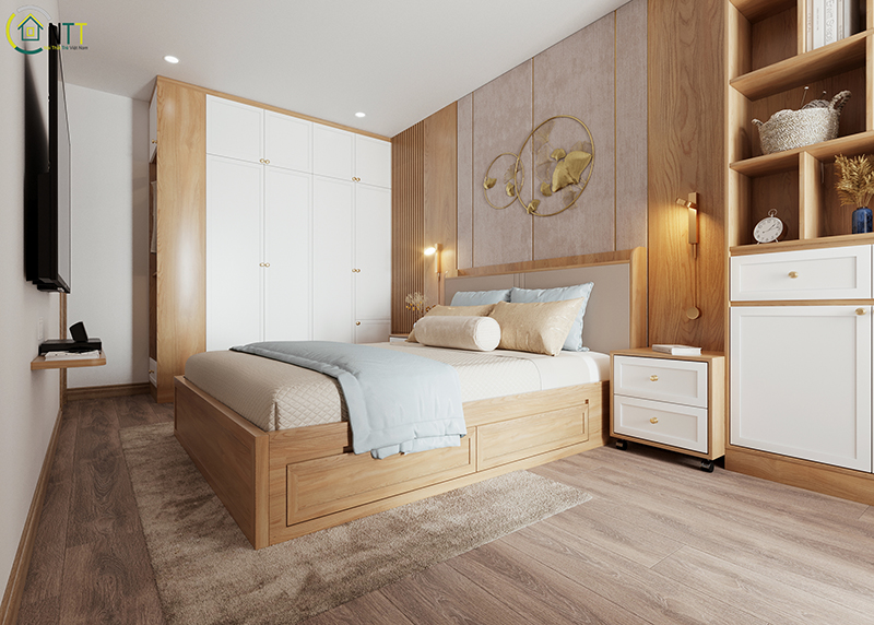 Phòng ngủ có tủ âm tường để tiết kiệm diện tích