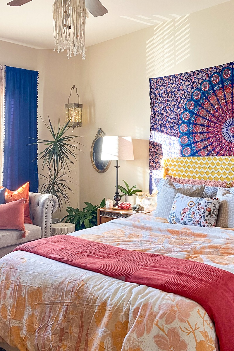 Nhiều màu sắc trong phòng ngủ phong cách bohemian